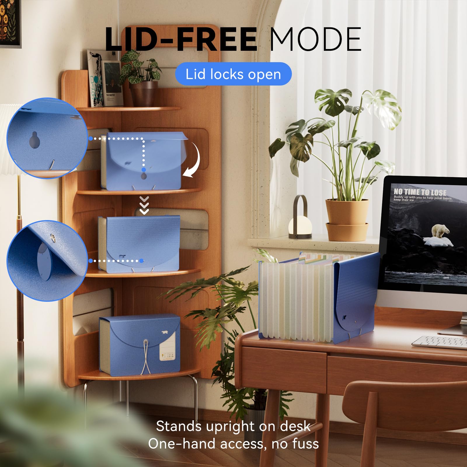 【Lid Lock Design - Easy Access & Secure Carry】This file organizer has a smart rear lock hole. When open, the cover locks to the back—switch to【lid-free mode】 in seconds for quick file access. Grab frequently used files with one hand—no more annoying lid flipping! When closed, the cute polar bear design spices up work and life, making storage fun and carrying a breeze.
