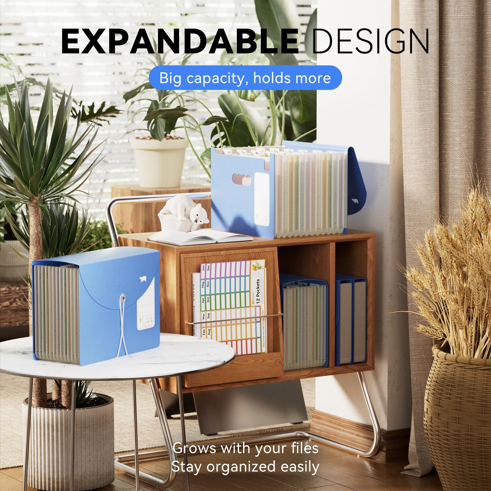 13-Pocket Accordion File Organizer,Wheat Straw Expanding File Folder with Polar Bear Cut-Out,Portable Monthly Paper Bill Tax Receipt Organizer, Letter A4 Size -UN Blue Polar Bear