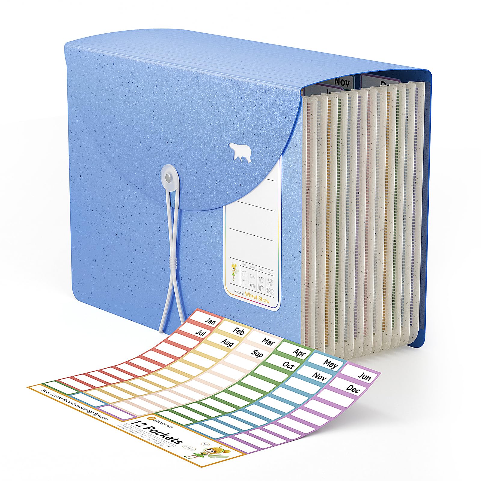 12 Pockets Wheat Straw Expanding File Folders, Upright & Open Top, Monthly Bill Receipt Organizer, 100% BPA Free, Return to Nature, Healthy Living, Letter/A4 Size